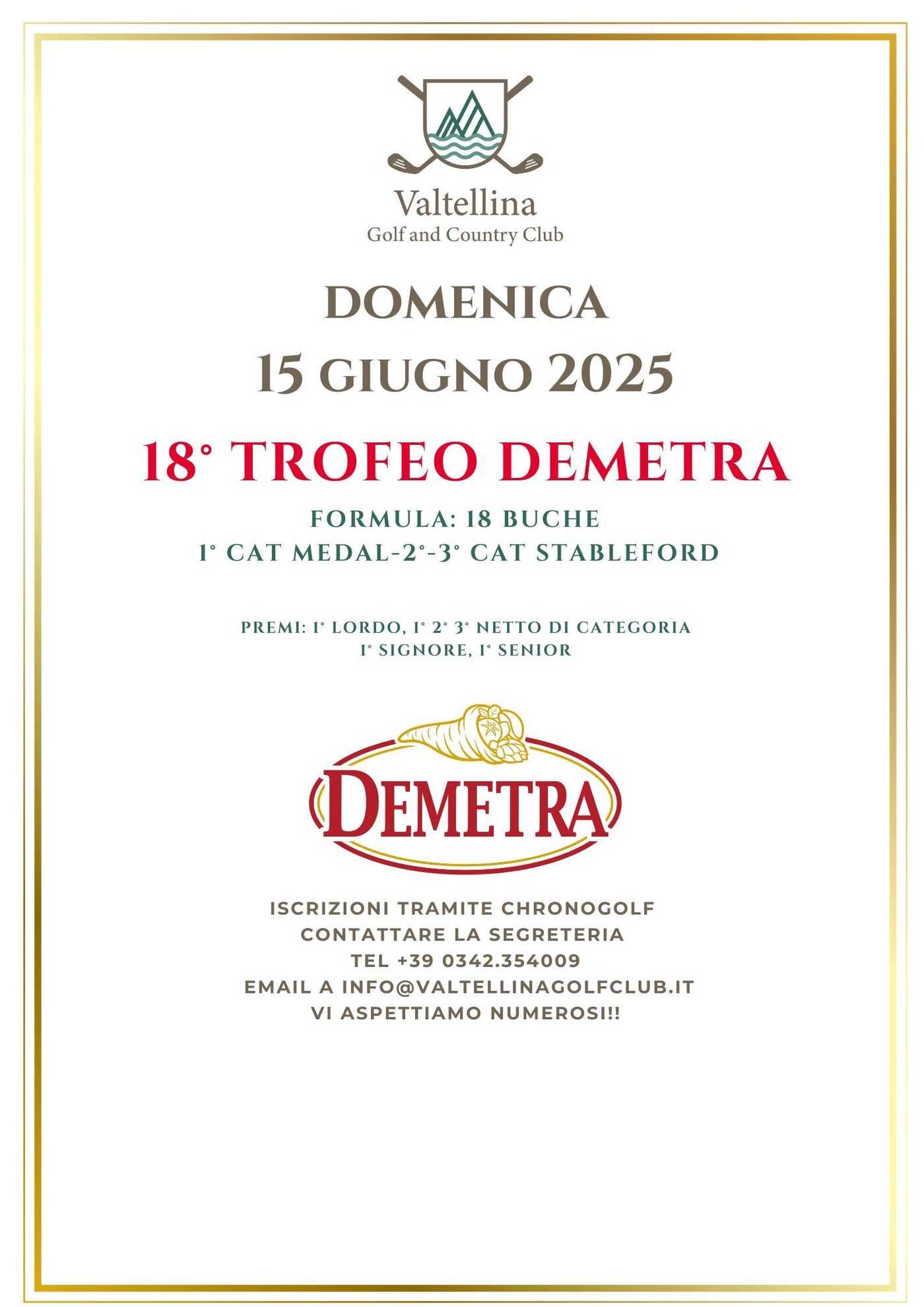 Domenica 15 Giugno al Valtellina Golf Country Club di Caiolo si svolgerà la gara di golf 18°Trofeo Demetra
