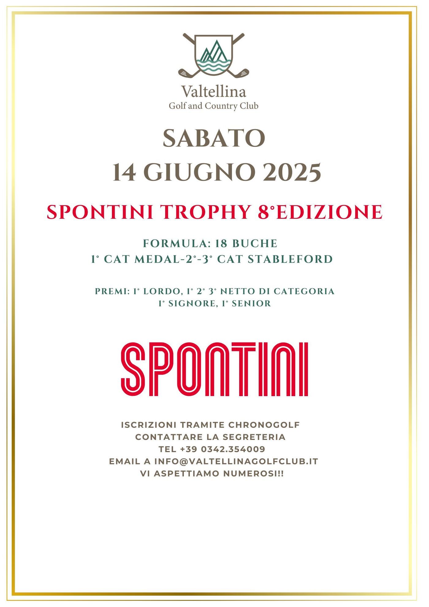 Sabato 14 Giugno al Valtellina Golf Country Club di Caiolo si svolgerà la gara di golf Spontini Trophy 8^ Edizione
